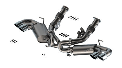 Developing systems for the C8 Corvette presented BORLA® engineers with unique challenges, but our team was up to the challenge. This 3" Inlet Cat-Back™ system includes AFM ('20-'21)/ DFM ('22-'25) valves but does NOT include NPP dual mode exhaust valves. It features the aggressive ATAK® sound and provides a more exciting driving experience without any drone. It contains our Polyphonic Harmonizer and SwitchFire™ technology. BORLA®'S Polyphonic Harmonizer Technology utilizes patented units that contain pipes of different diameters and lengths to create multiple exhaust notes that harmonize to deliver a clean, rich, full-bodied sound. Completely eliminating the turbulent center intersection of a standard X-Pipe, BORLA®'S patented SwitchFire™ design truly blends the combustion pulses from both sides of the engine for improved performance and a custom sound.