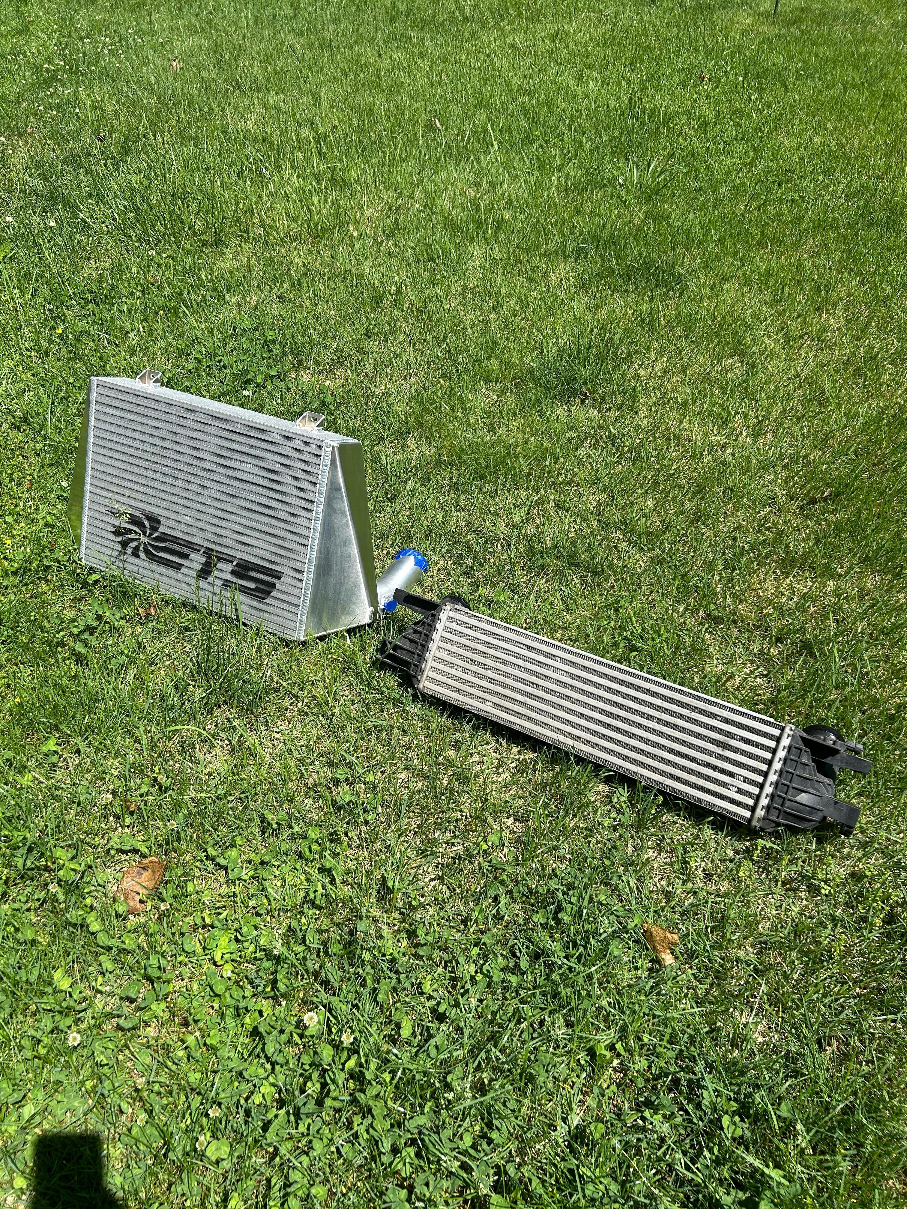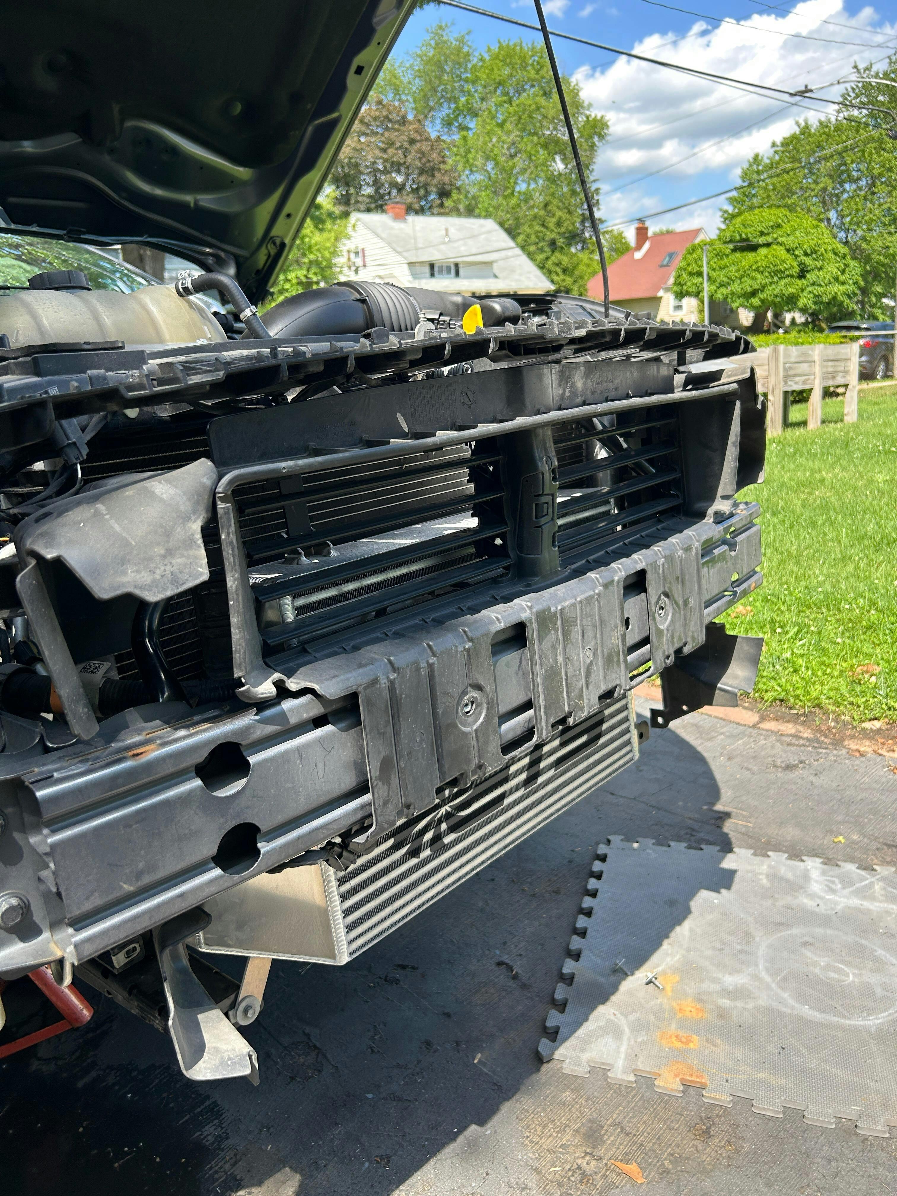Go big or go home lol. Didn’t want to regret going with a small intercooler so my two choices were this or the cvfab race. It may seem like the cvfab is better value but in reality they sized the pipes bigger to force you to buy charge pipes. The build quality is also better with the ets. Was able to cut my active shutters to keep the top half ( mixed info on the internet about check engine lights from leaving it unplugged so if you’re worried about that tear the motor out of the shutters to plug in or do it the way I did). Also I modified the plastics to fit that help direct airflow around the radiator and intake. Took me a whole day because I’m meticulous and slow and take a lot of breaks lol but someone well prepared could do it easily under 3 hours. I could repeat it in 2 hours now that I’ve done it. Charge temps respond so differently now it’s incredible. Once you get into the boost the temps drop like a stone. On an 85 degree day I held the throttle to the floor and the temps dropped to 95 and held. Used to see temps well above 150.
