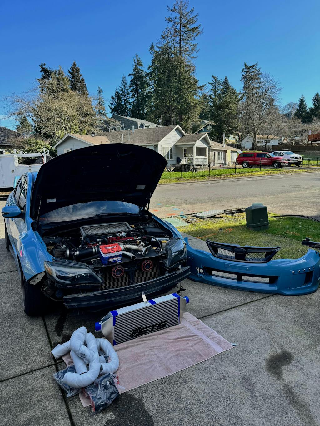 2013 WRX with FP Blue (STI style turbo) replacing a Process West Verticooler
