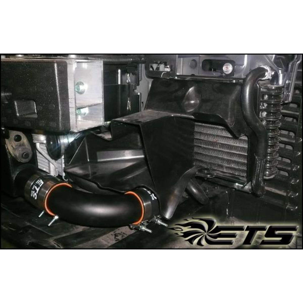 From the intercooler outlet the 2.5" mandrel bent piping continues around the core support, with only two gradual radius bends in its entire length, to the lower intercooler pipe bracket before making a straight shot to the throttle body. ETS 4-ply silicone and 100% SS T-bolt clamps are included for every connection to ensure that blown off intercooler piping stays a thing of the past!